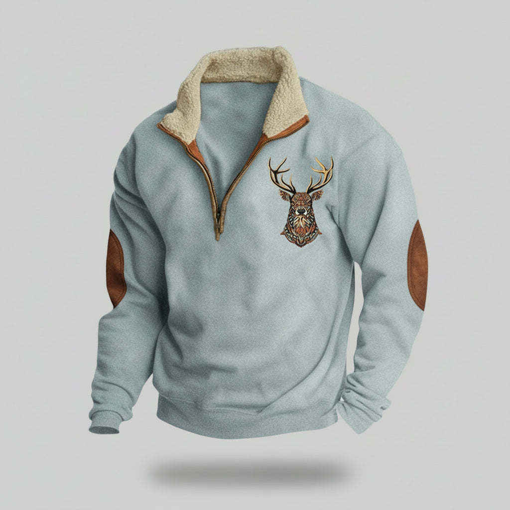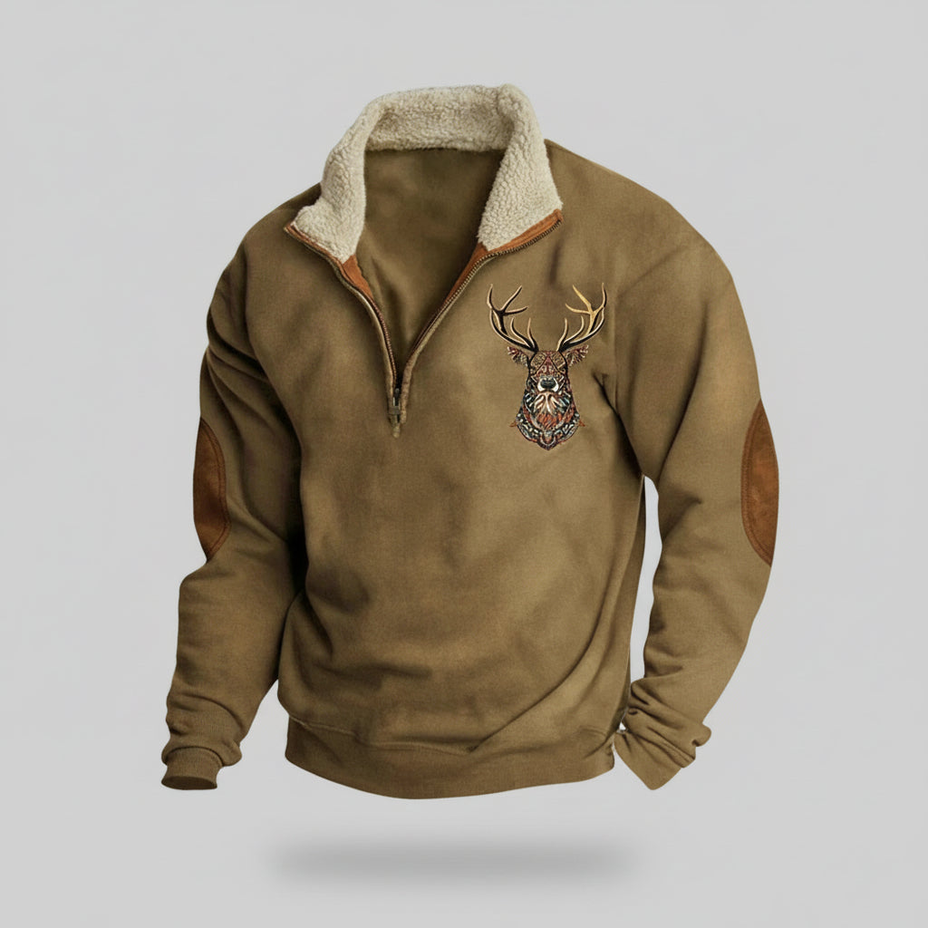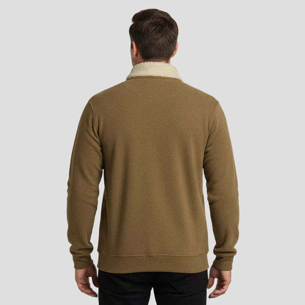 Das weiche, wärmende Innenfutter sorgt für angenehmen Tragekomfort, während der hochgeschlossene Reißverschlusskragen flexible Wärme bietet. Verstärkte Ellbogenpartien ergänzen das Design um funktionale Beständigkeit. Vielseitig und souverän begleitet dieser Pullover sowohl Aktivitäten im Freien als auch entspannte Wintertage.